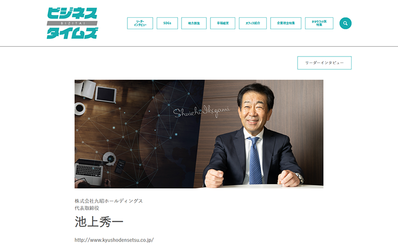 この度、弊社の代表取締役である池上 秀一が、ビジネス情報メディア『ビジネスタイムズ』のリーダーインタビューに掲載されました。